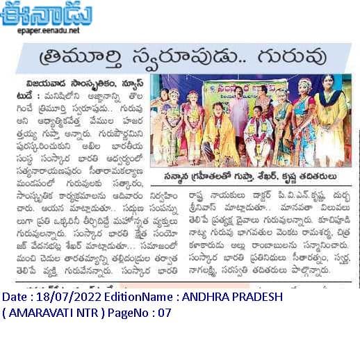 నటరాజ పూజా దినోత్సవం-సంస్కార భారతి-2022