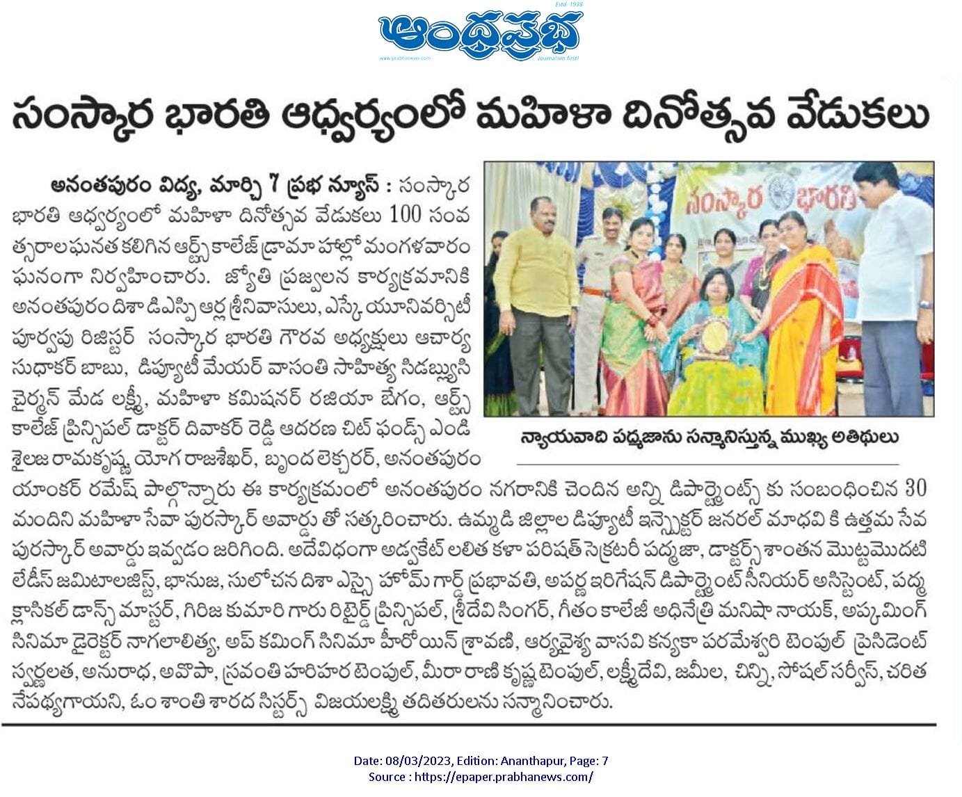మహిళా దినోత్సవం-సంస్కార భారతి-2023