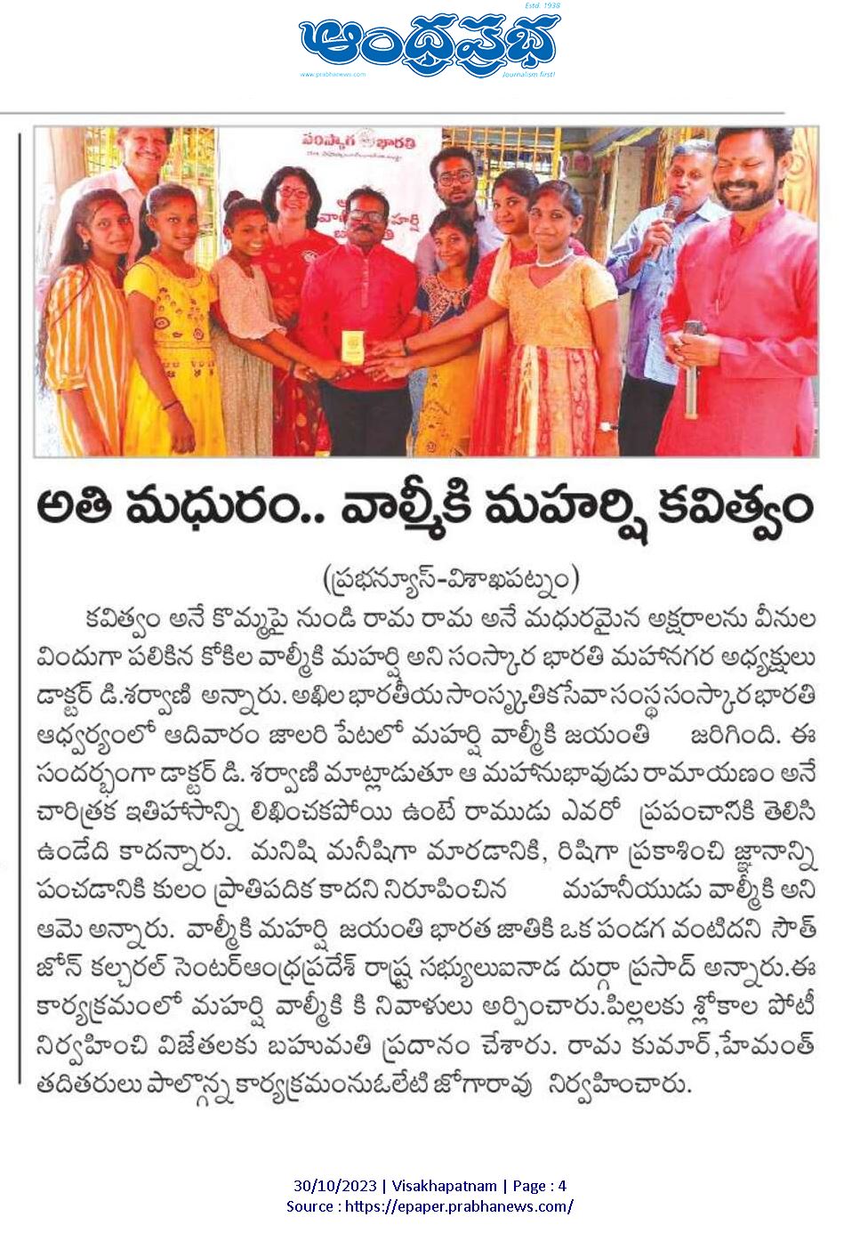 వాల్మీకి జయంతి -సంస్కార భారతి 2023