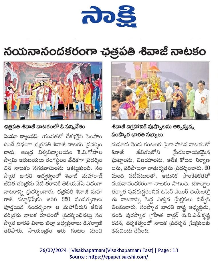 జయహో శ్రీ ఛత్రపతి శివాజి మహారాజ్ నాటకం -సంస్కార భారతి