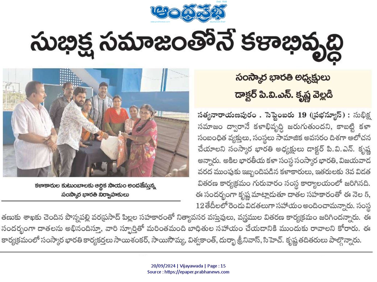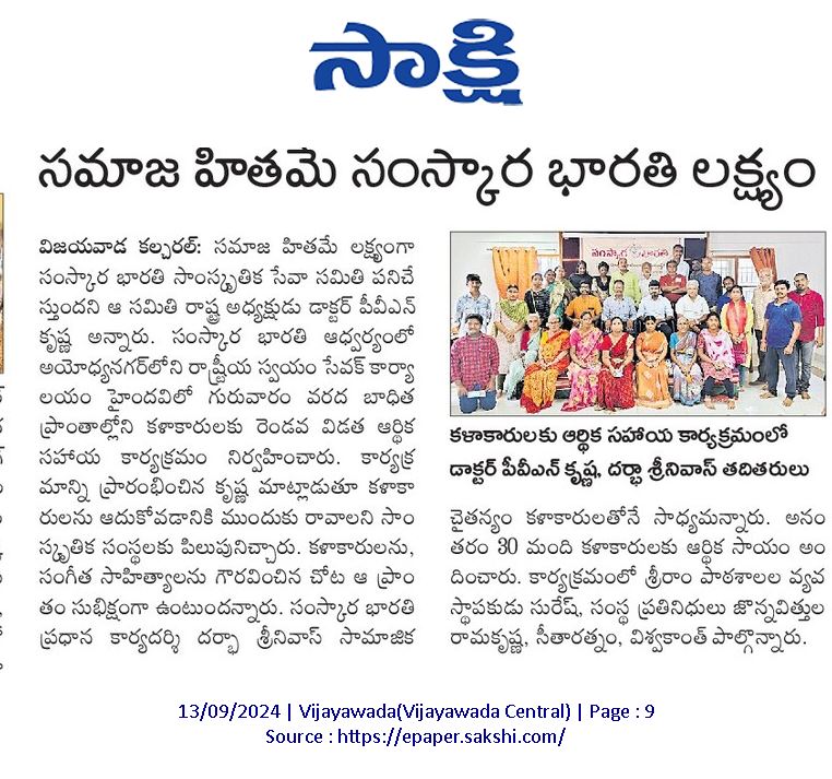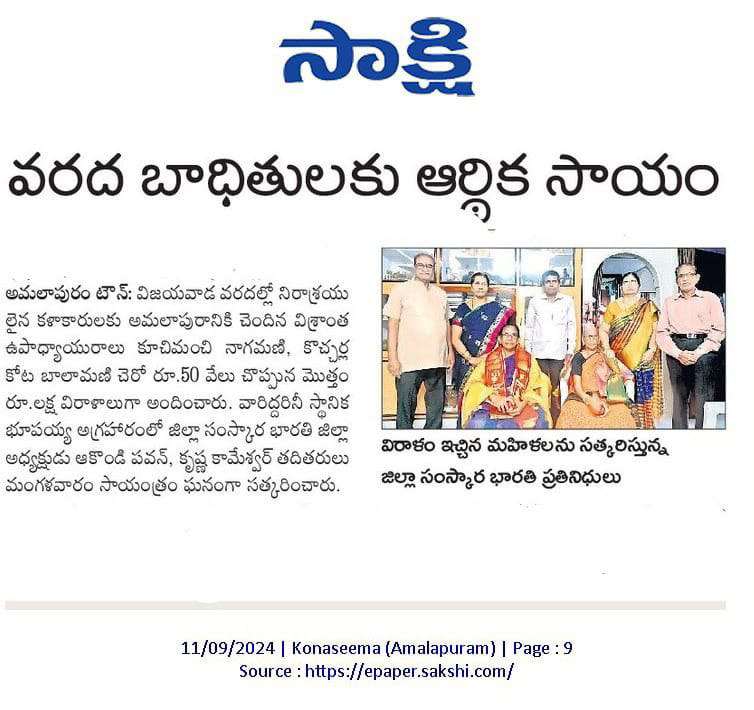 విజయవాడ వరద ముంపుకి ఇబ్బంది పడ్డ కళాకారులు/ఇతరులకు , నగదు/ వస్తు రూపేణా సెప్టెంబర్ 5,12,19 తేదీలలో 150 మందికి పైగా వితరణ జరిగింది