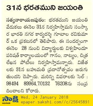 భరత ముని సంస్మరణ దినోత్సవం-2018