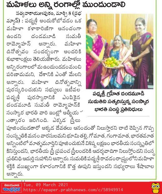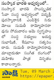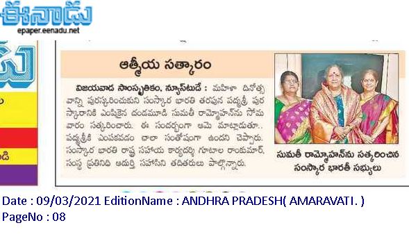 శ్రీమతి దండమూడి సుమతీ రాంమోహన్ గారికి