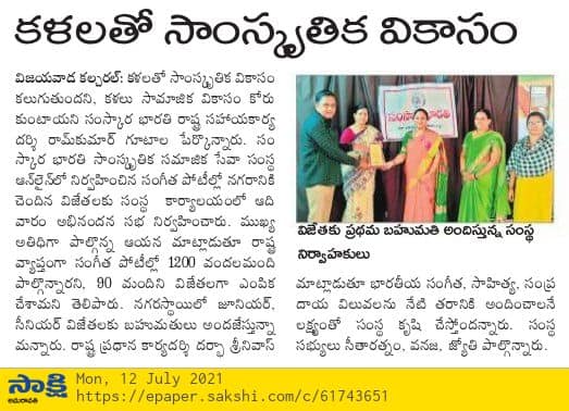 రాష్ట్ర స్థాయి పోటీలు-సంగీతం-2021