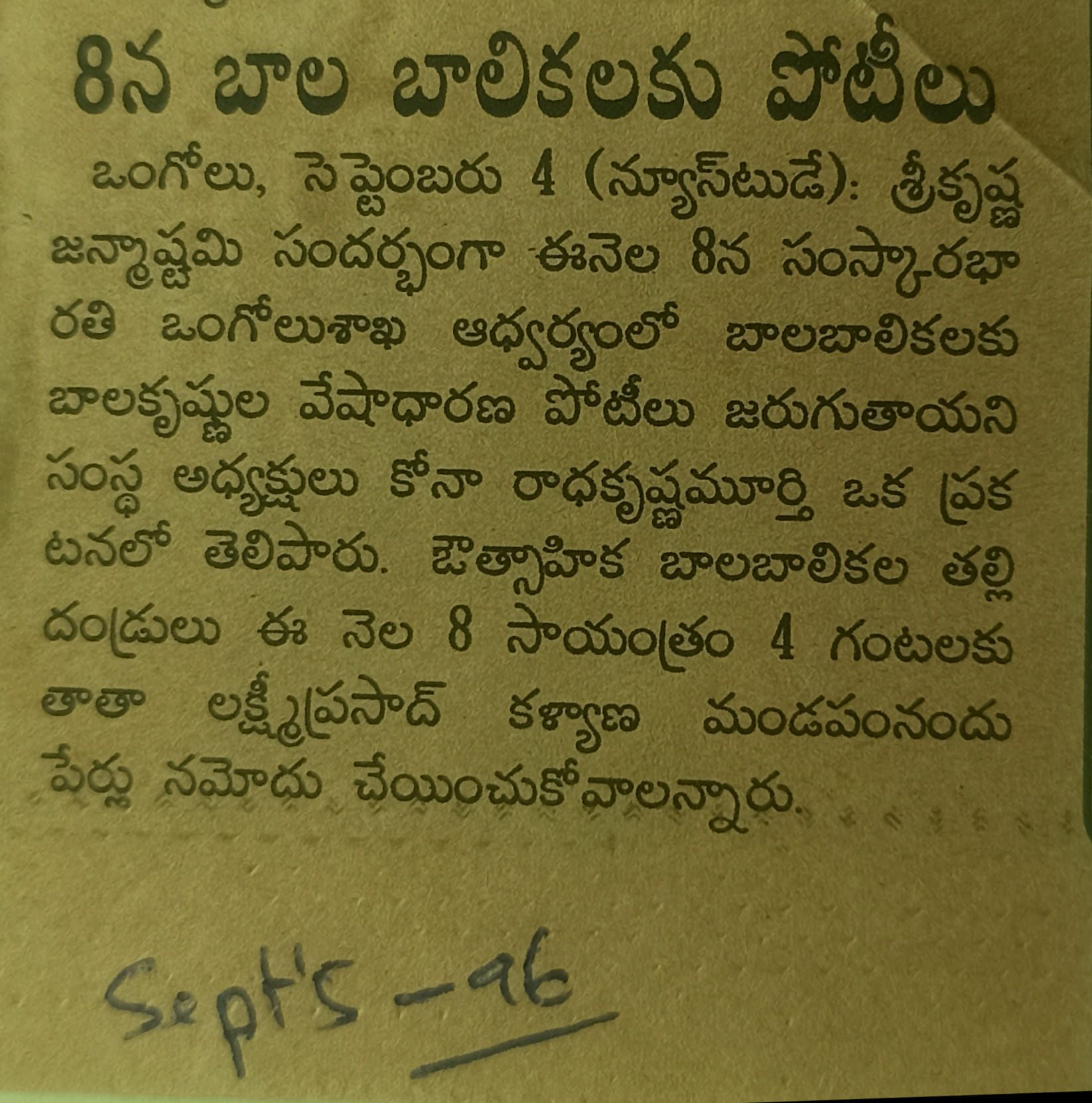 10-09-1996 SAMSKARA BHARATHI