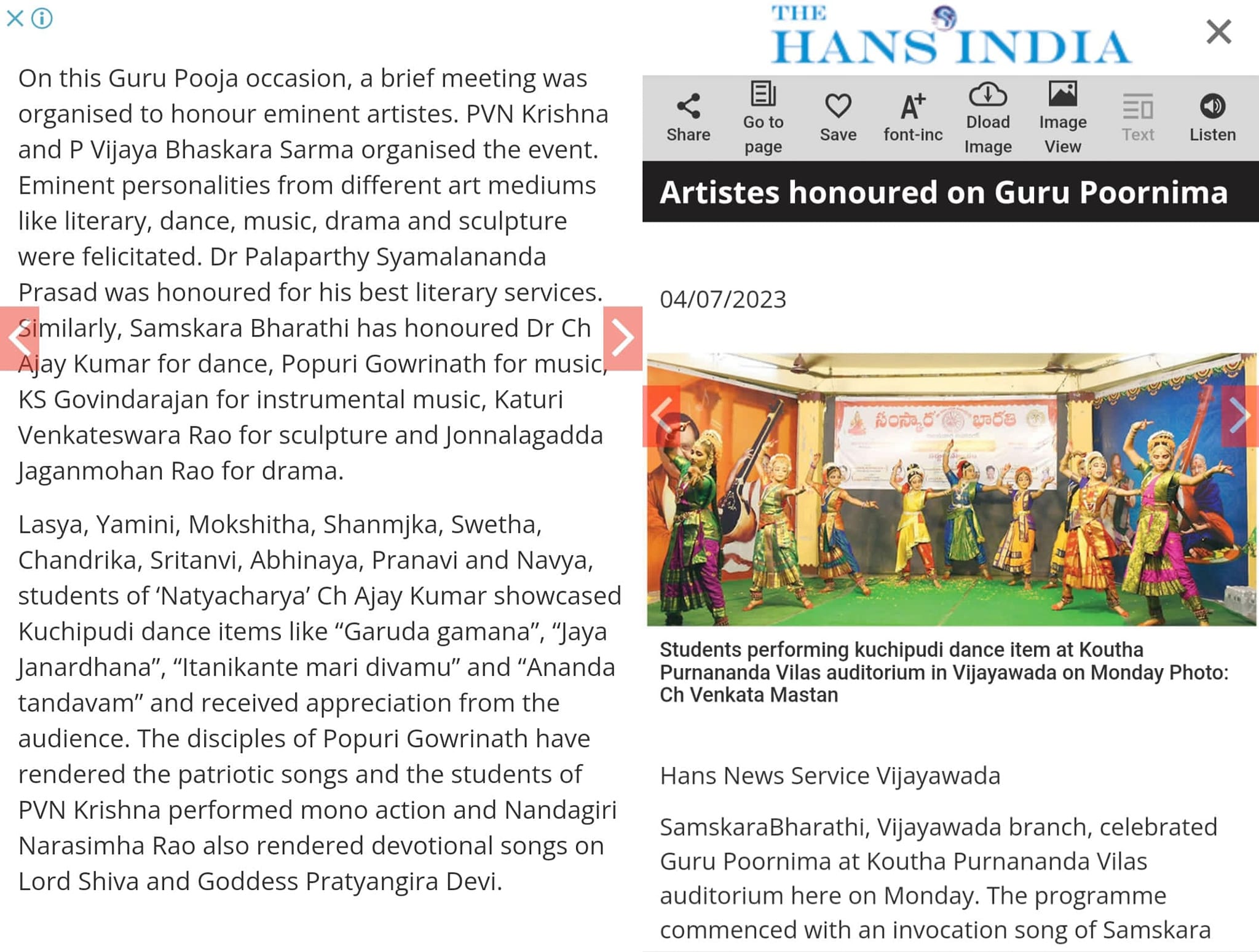 నటరాజ పూజా దినోత్సవం-సంస్కార భారతి-2023