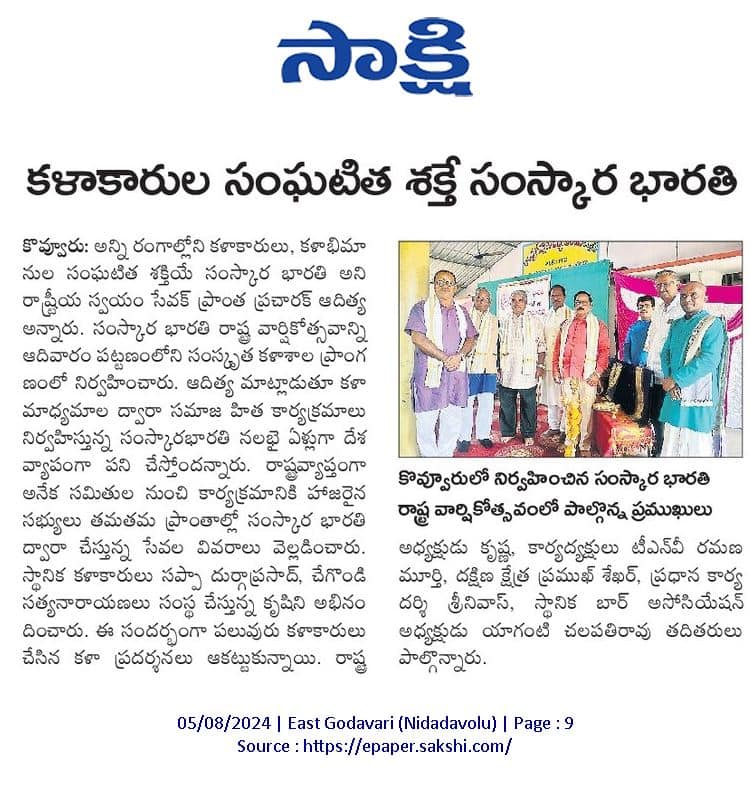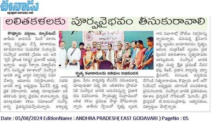 Samskara Bharathi AP (Charity Organization) provides opportunities for the public to co-operate with the our organization in carrying out various types of work chalked out by foundation for serving humanity. You are cordially invited to help us by contributing to one or more of the Funds, which need their active support. We earnestly appeal to the generous public to contribute their mite towards any of the schemes or towards the day-to-day running of various service activities of the Organization, either as endowment fund or as general donation. Insist for Receipt whenever you donate to the Organization or its authorized agent. Donations to Samskara Bharathi AP (Charity Organization) are exempt from Income Tax under Section 80G of the Income Tax Act, 1961.