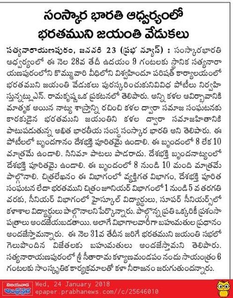 భరత ముని సంస్మరణ దినోత్సవం-సంస్కార భారతి-2018