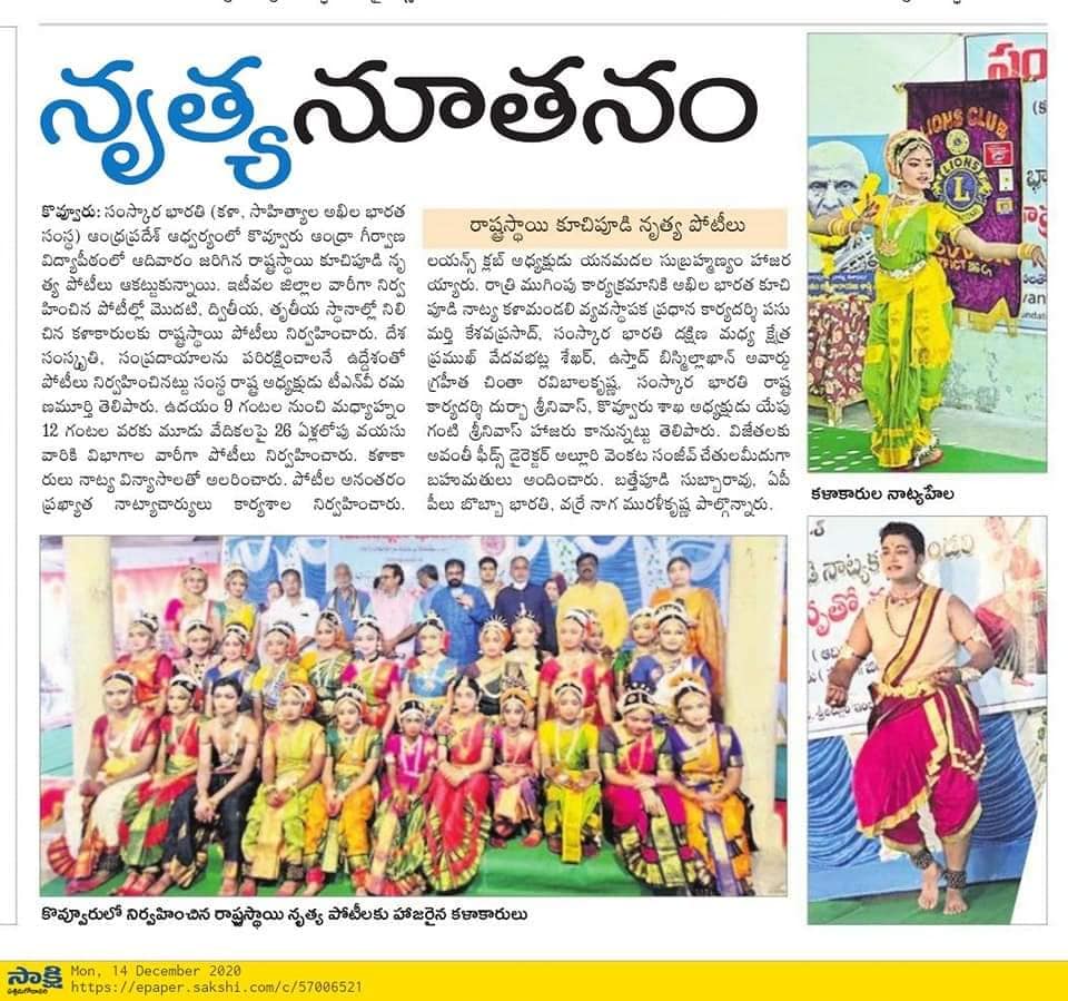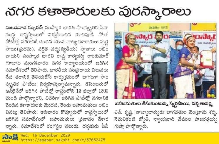 రాష్ట్ర స్థాయి పోటీలు-నృత్యం-సంస్కార భారతి-2020