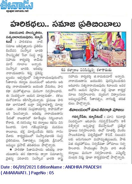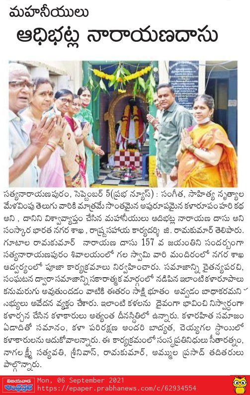 శ్రీ ఆదిభట్ల నారాయణ దాసు జయంతి-సంస్కార భారతి-2021